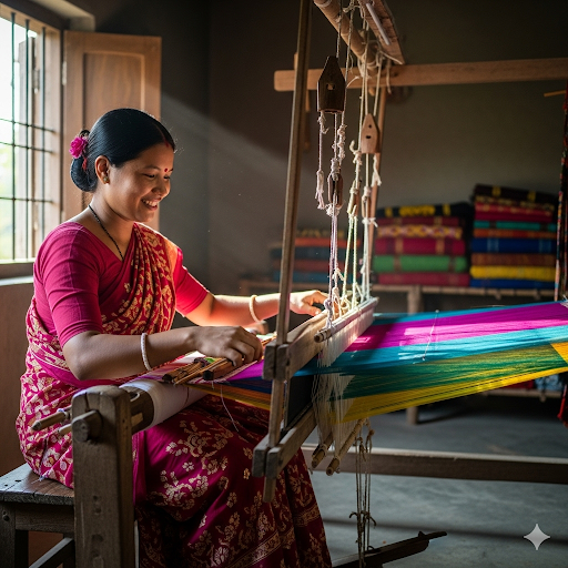 Every mekhela chador you see here is more than fabric it’s someone’s pride. For the artisans of Sualkuchi, weaving isn’t just tradition, it’s joy. The smile you see is the reflection of work well done, of carrying forward the skills passed down by parents and grandparents.