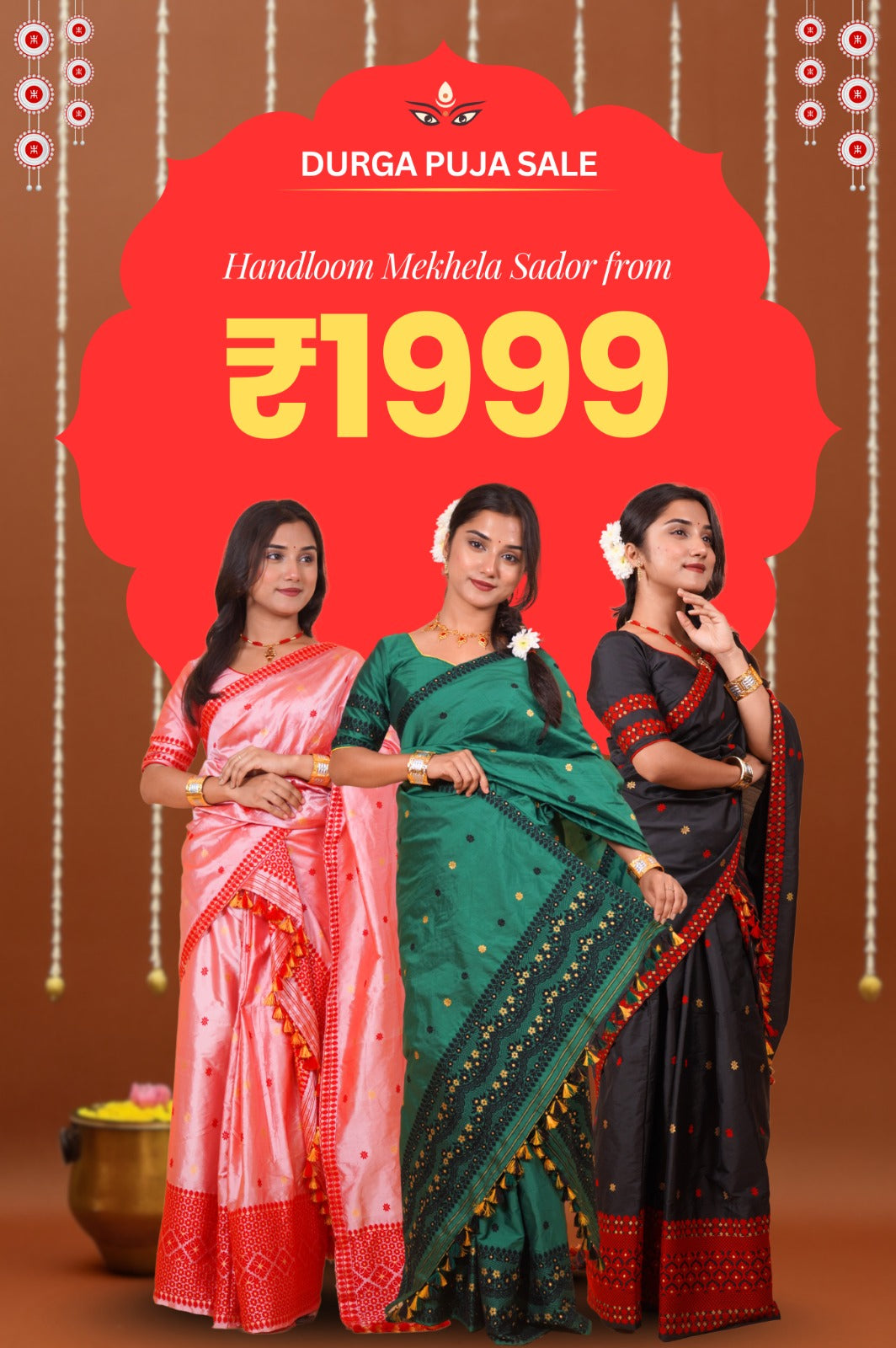 Discover Assam’s traditional two-piece dress – the graceful Mekhela & Chador – woven with heritage, tradition, and unmatched artistry.
